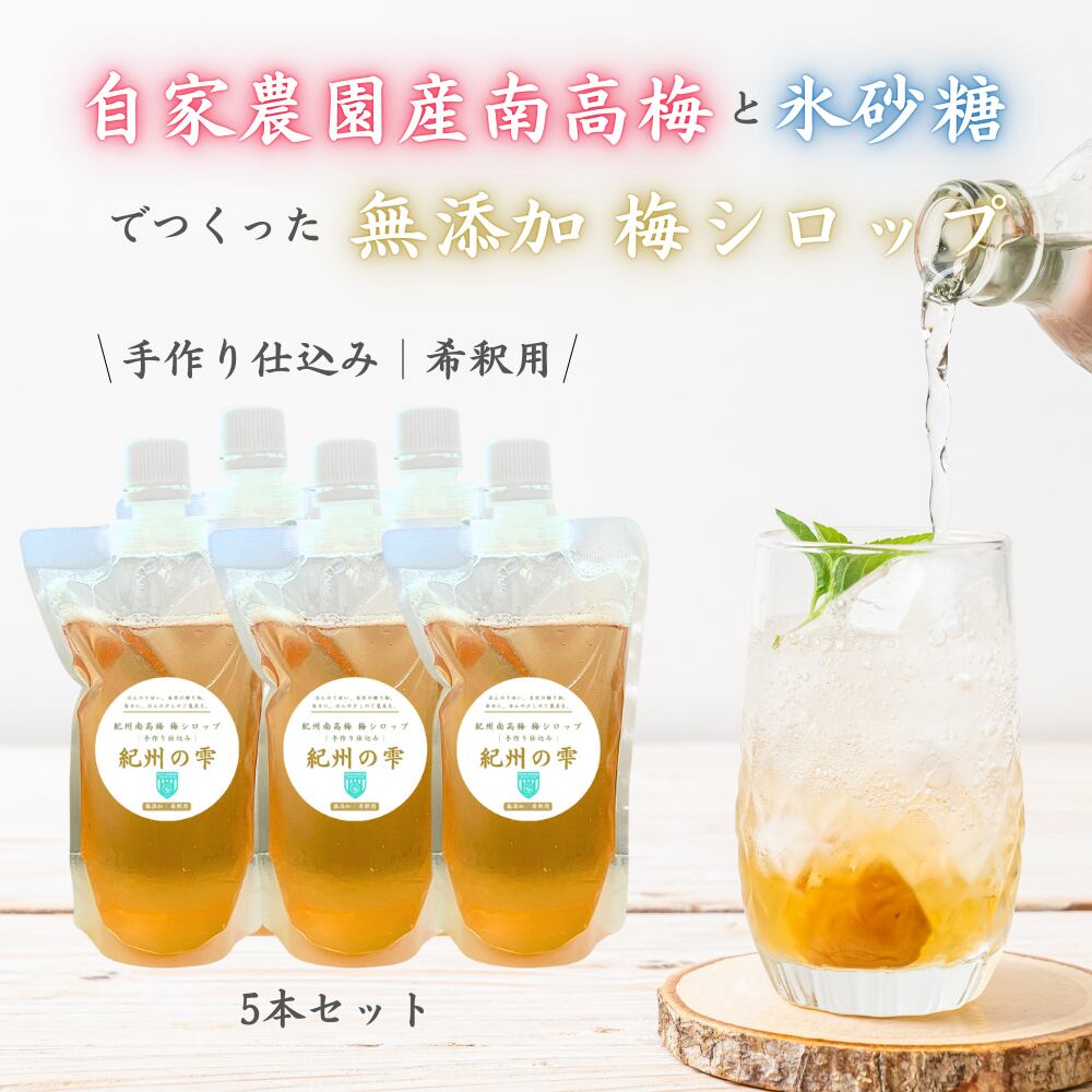 【きのくに南サッカークラブ 雹害支援 コラボ商品】 紀州南高梅 無添加 梅シロップ【紀州の雫】 和歌山県産 425g×5本セット 【全国一律送料込み】 | 紀州梅千景|紀州南高梅・梅商品のオンラインショップ