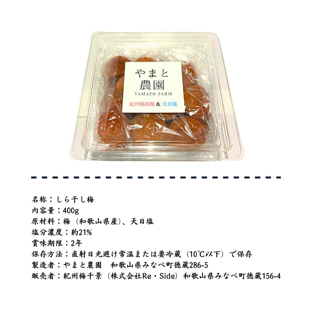 和歌山県みなべ町の自家農園で育てた紀州南高梅を使用した、手づくりの梅干し(しら干し)です。